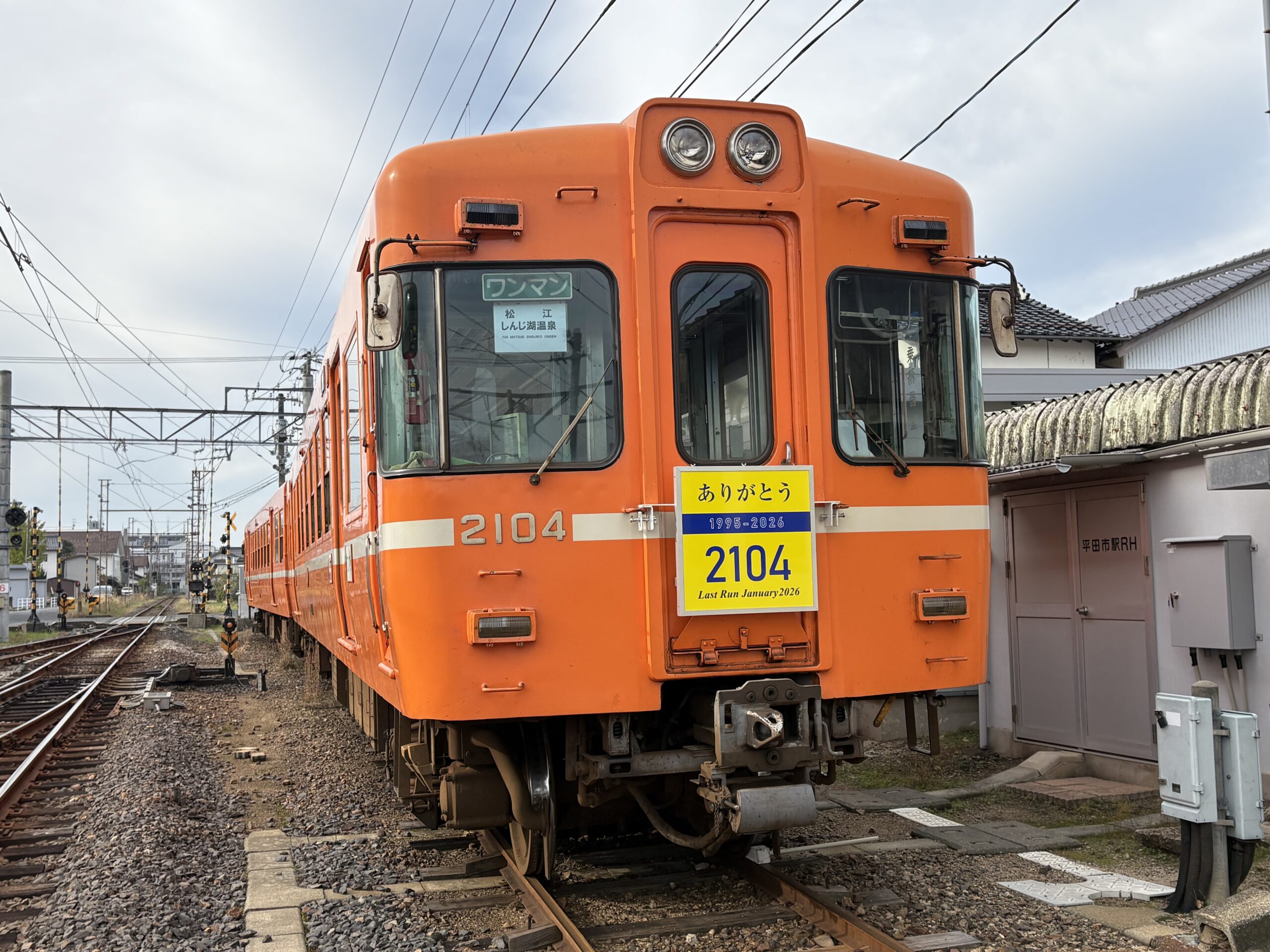 令和8年1月12日(月・祝)をもって引退する2104・2114号に、これまでの感謝の気持ちをこめて下記内容でヘッドマークを掲出いたします。ぜひ、同車に会いに来ていただければと思います。